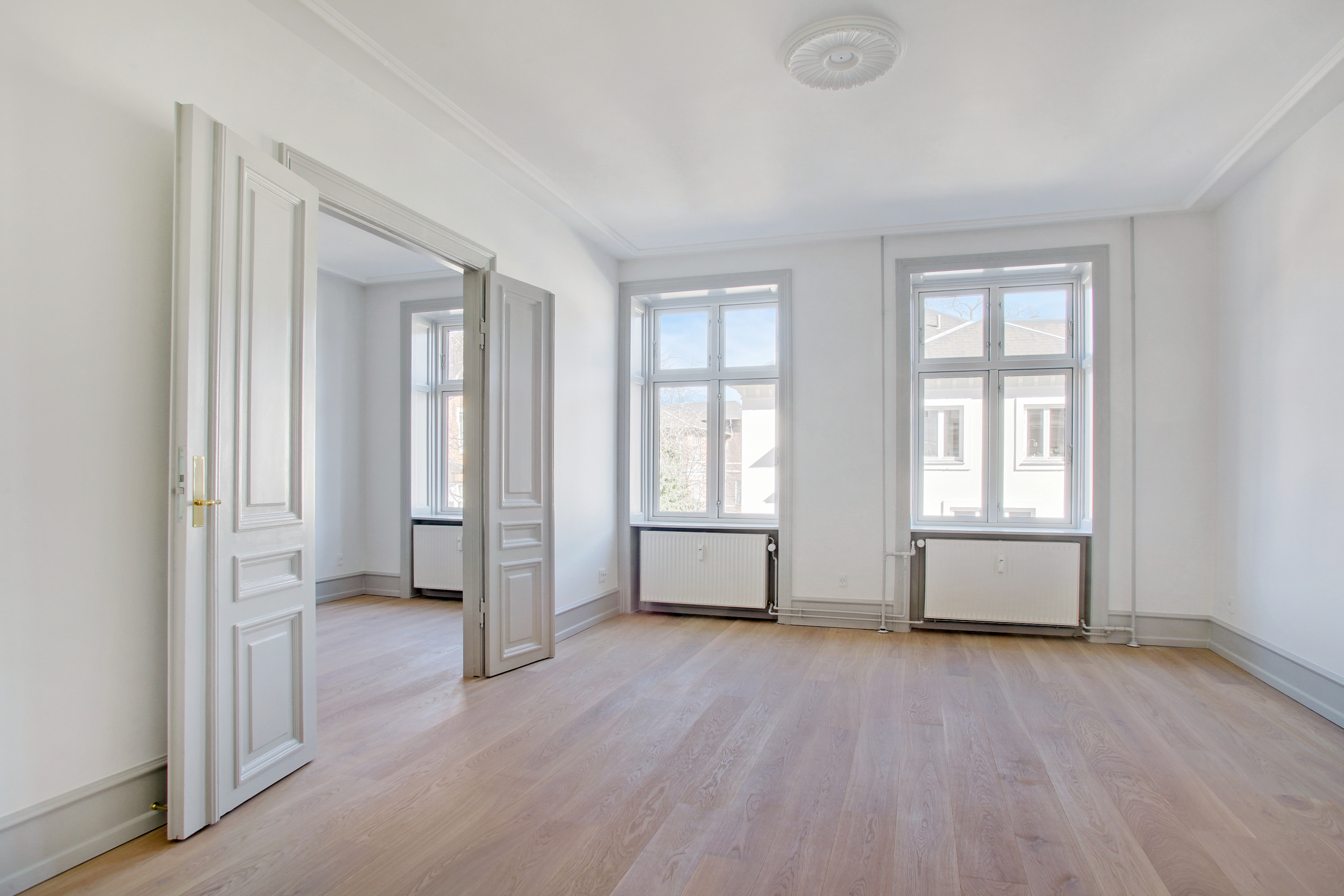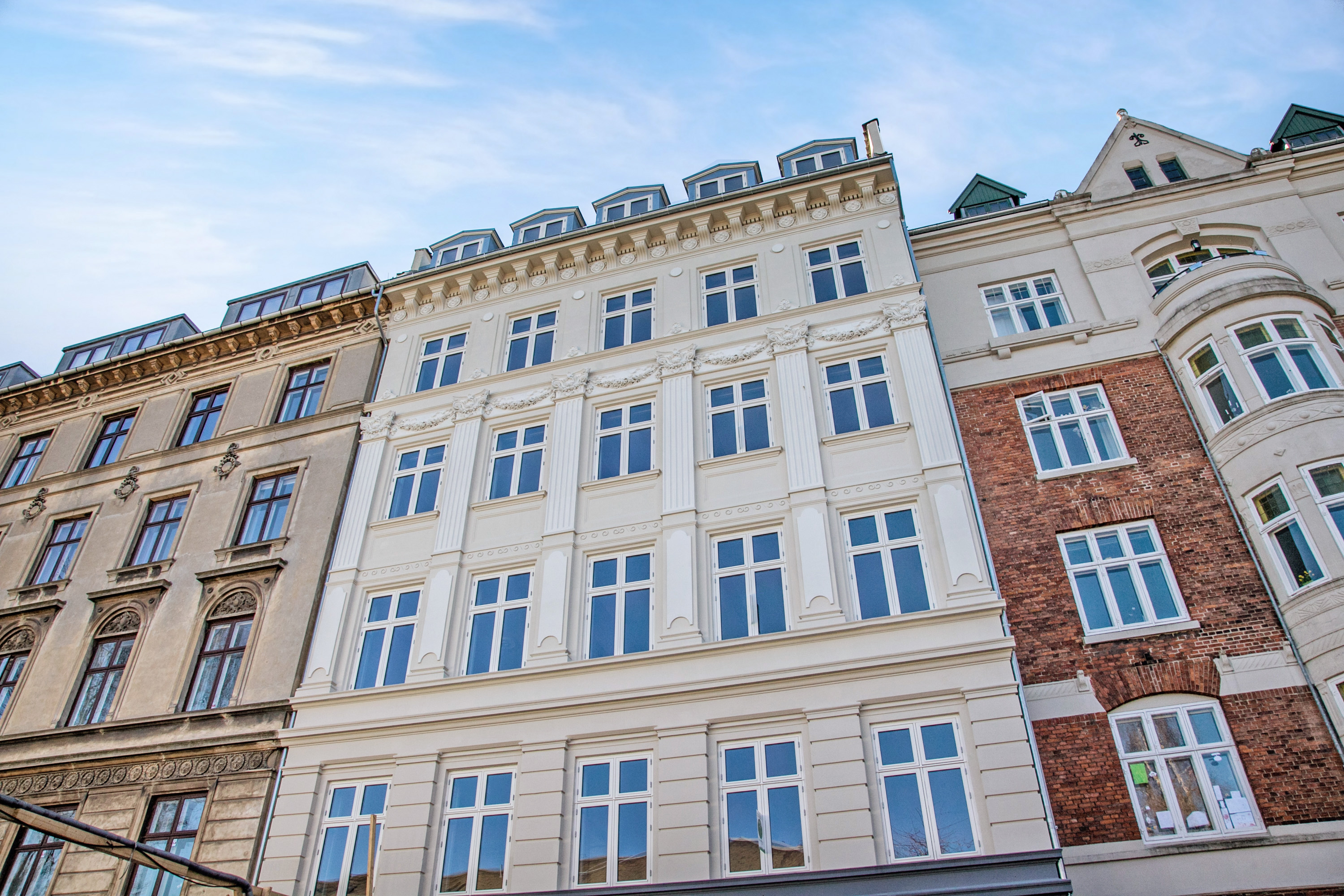 With schools and kindergartens nearby, the property is ideal for families who wish to enjoy a peaceful setting without giving up vibrant city life. The building was originally constructed in the Danish Historicist style, characterized by rich detailing, symmetry, and distinctive relief and ashlar patterns.
